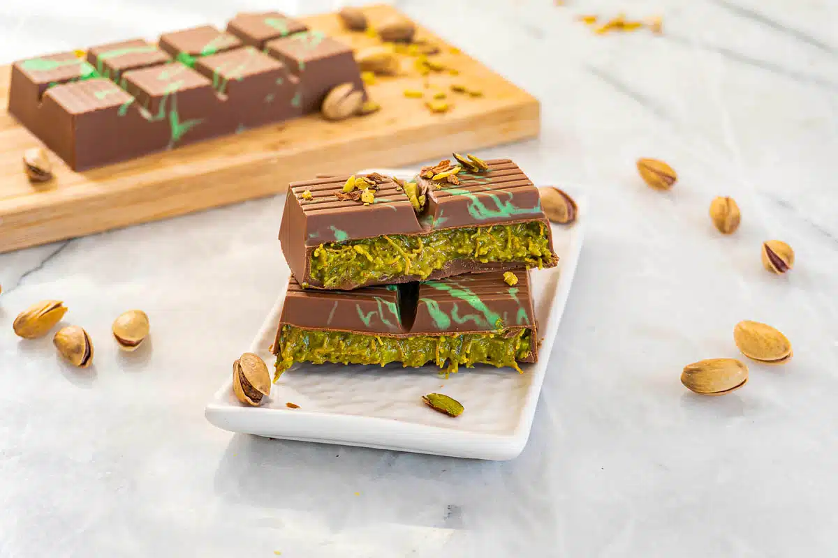 Made with silky pistachio cream, crunchy kataifi, and decadent chocolate, this homemade Dubai chocolate bar is the perfect fusion of Middle Eastern flavor and indulgence.