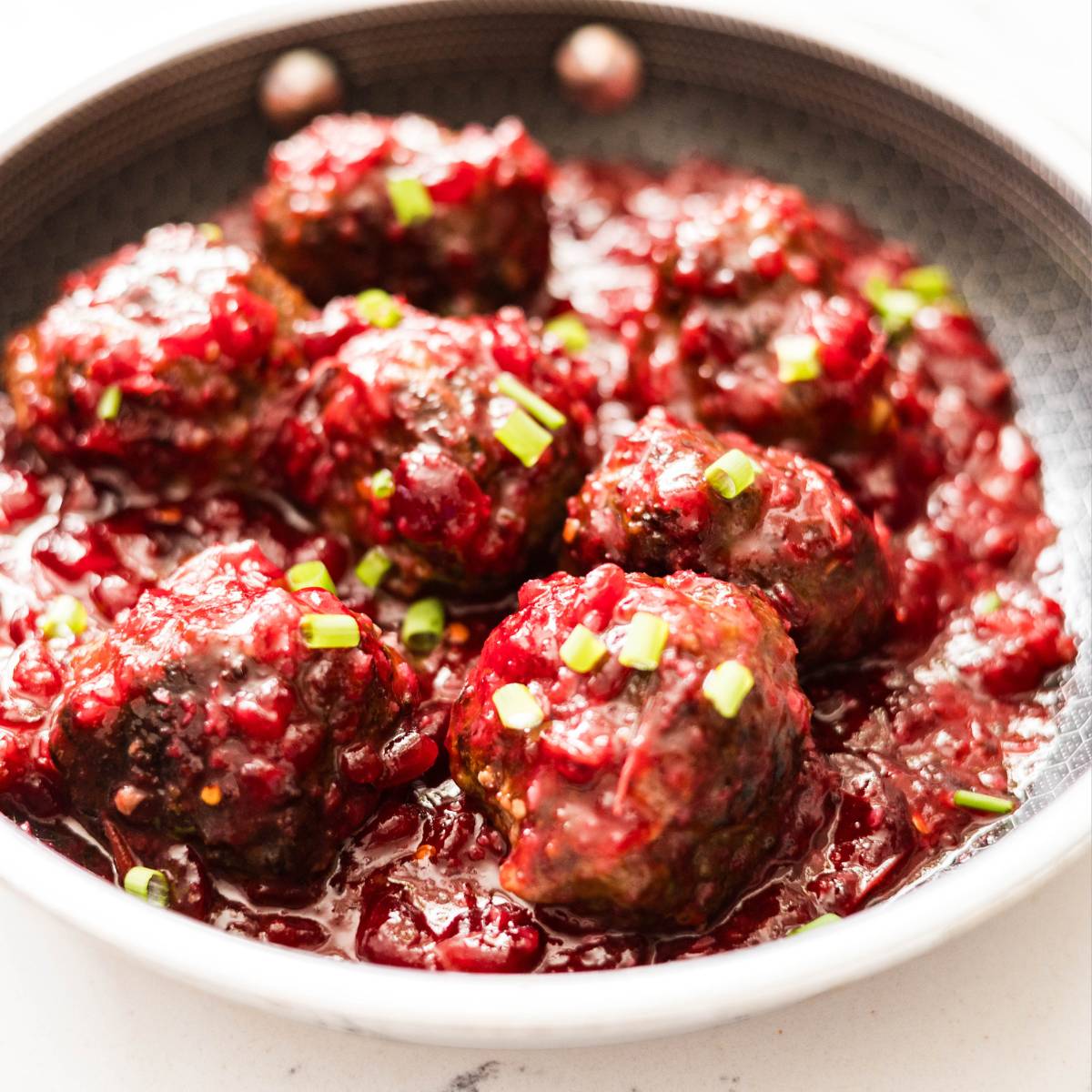 Cranberry sauce meatballs are a sweet-and-savory appetizer (or dinner) where cooked meatballs are coated in a cranberry-based sauce.