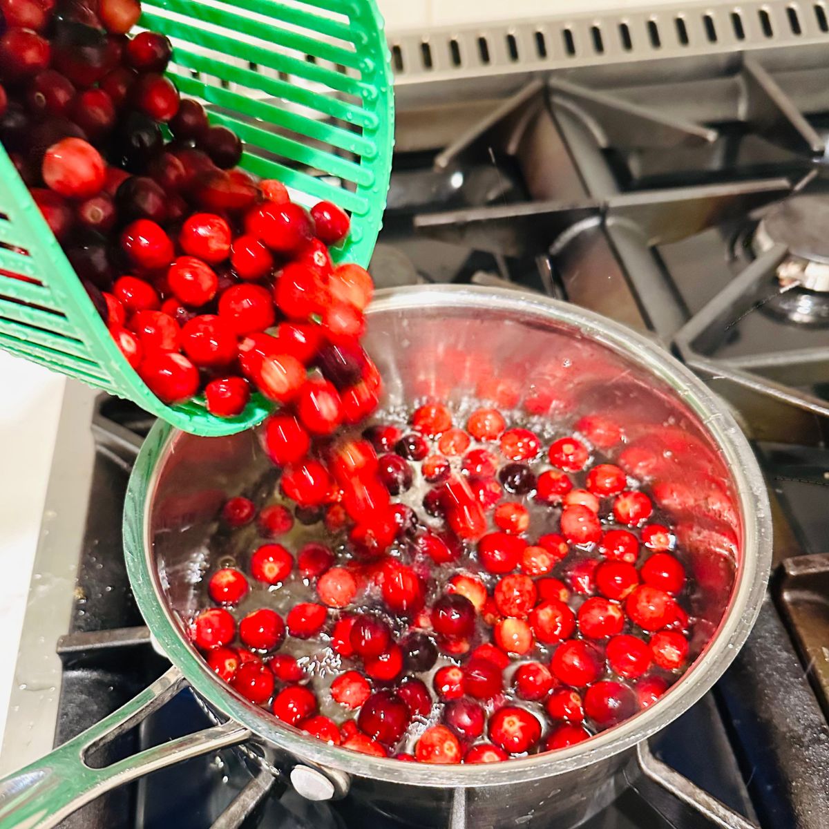 - Step 3: Add cranberries and bring to a simmer over medium heat โ youโll hear the cranberries start to pop.